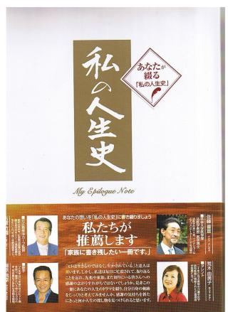 「私の人生史」 家系図をはじめ、今までの貴方の人生記と、大切な家族との歴史を綴れる一冊ができました。 誕生から今まで、そしてこれからの自分を「書く」ことであなたの人生が見えてくる。 好きな写真やスクラップ、老後に備えての自分の考えのまとめ・・・住所録他 人生のゴールを見つめ、この1冊に書き込むうちに、あなたの「これから」が見えてきます。 ご自宅で印刷してご活用下さい。 私の人生史PDF 毎年、印刷し綴っていかれる事をおすすめします。 |